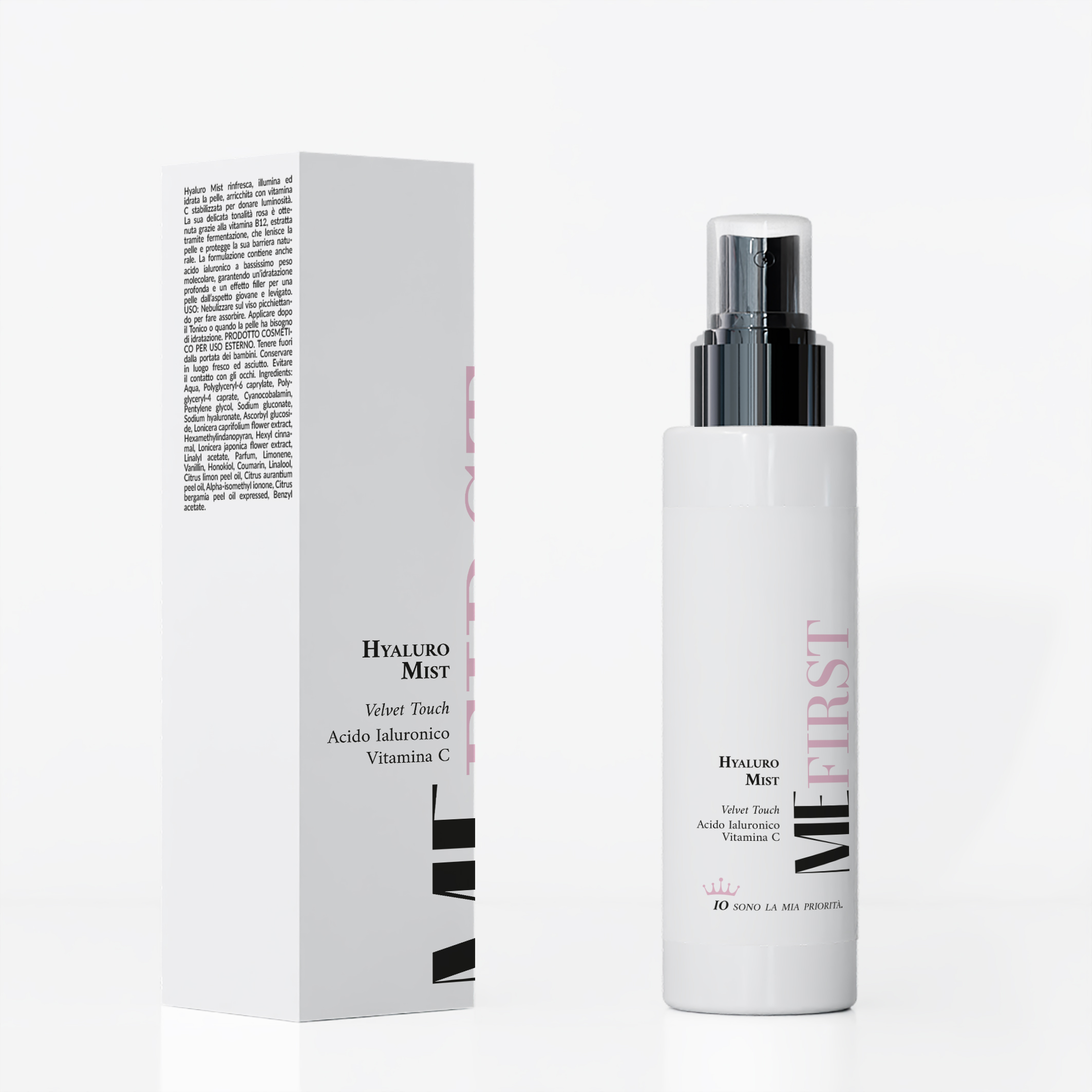 Hyaluro Mist è una soluzione dermo-funzionale a nebulizzazione ultrafine, studiata per apportare un booster di idratazione immediata e comfort cutaneo. La formula combina Vitamina B12, ideale per pelli sensibili e reattive, Acido Ialuronico a bassissimo peso molecolare, capace di penetrare negli strati più superficiali dell’epidermide per un’idratazione profonda, e Vitamina C, ad azione illuminante e antiossidante.