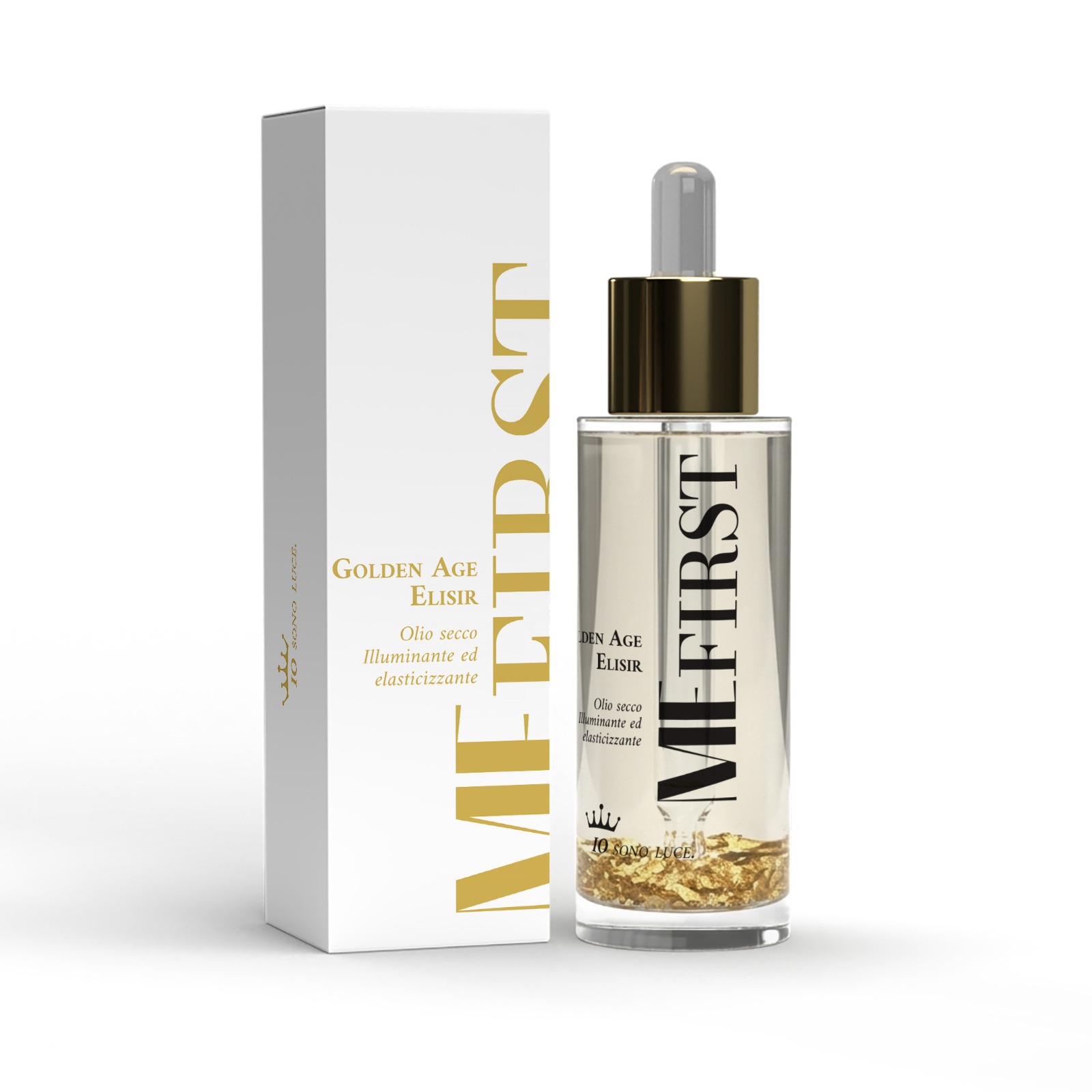 Olio multiuso dalla formulazione secca e leggera, contenente polvere d’Oro 24 kt. disciolta in ricchi oli di Jojoba, Oliva, Germe di Grano e Argan con proprietà nutrienti e idratanti, Vitamina E e olio di Rosa Mosqueta: una perfetta sinergia di attivi, alleati nel trattamento estetico illuminante e antietà di viso, collo e décolleté.